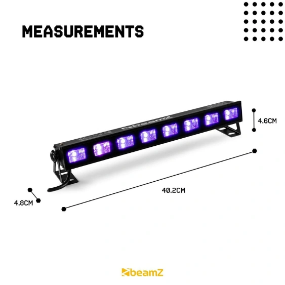 Met de Complete Blacklight set van BeamZ creëer je een krachtig en egaal Blacklight-effect in grotere ruimtes. Deze set bestaat uit 4 krachtige BUV93 LED BARs, die gebruikmaken van moderne LED-techniek voor een hoge lichtoutput met een laag energieverbruik. Dankzij het plug & play-systeem is de installatie eenvoudig: steek de stekker in het stopcontact en schakel de lampen in via de schakelaar in het snoer. De ophangbeugels die bij de Blacklight bars worden geleverd, maken het eenvoudig om de lampen op de gewenste hoogte te bevestigen. Ideaal voor feesten, evenementen of andere gelegenheden waar een indrukwekkend Blacklight-effect gewenst is.