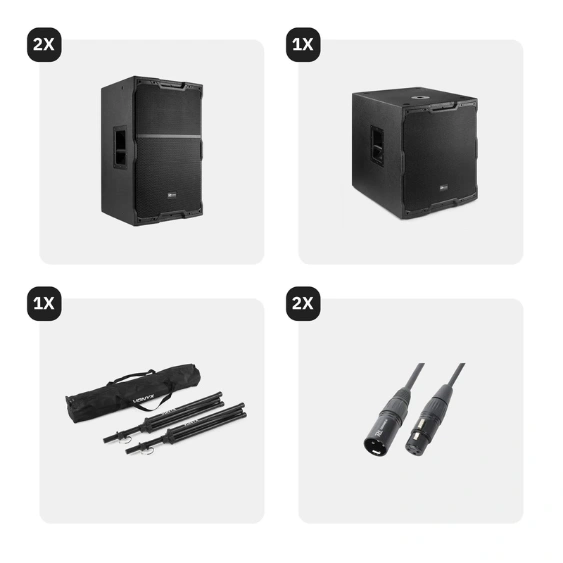 Heb je krachtig geluid nodig voor je aankomende evenement? Zoek niet verder dan de PDY2-4 complete geluidsinstallatie 2600W. Deze actieve speakerset wordt namelijk geleverd met 2 zeer krachtige 800W speakers én een 1000W subwoofer. Stream je favoriete tracks via Bluetooth vanaf je smartphone of sluit rechtstreeks aan via de XLR aansluitingen. Door deze brede besturingsmogelijkheden is de set uitermate geschikt voor clubs, cafés, en evenementenlocaties, maar ook perfect voor live bands en drive-in DJ’s. Daarnaast is de PDY2-4 ook ideaal om te dienen als spraakversterking. Je sluit namelijk tot twee microfoons aan waardoor je hem kunt gebruiken tijdens conferenties of presentaties. Met een 15 inch woofer verzekert deze set een diepe bas die elk evenement zal versterken.