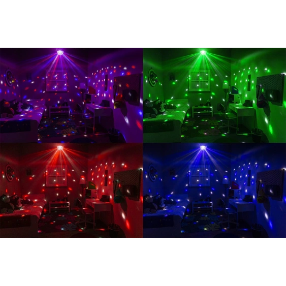 De discolamp is eenvoudig in gebruik dankzij de ingebouwde automatische programma’s en geluidsbesturing, waardoor de lichten reageren op de muziek. Voor extra controle kan de lamp ook via DMX (5 kanalen) worden aangestuurd, perfect voor een geavanceerde lichtshow. Met de meegeleverde afstandsbediening pas je de instellingen gemakkelijk aan naar jouw wensen.